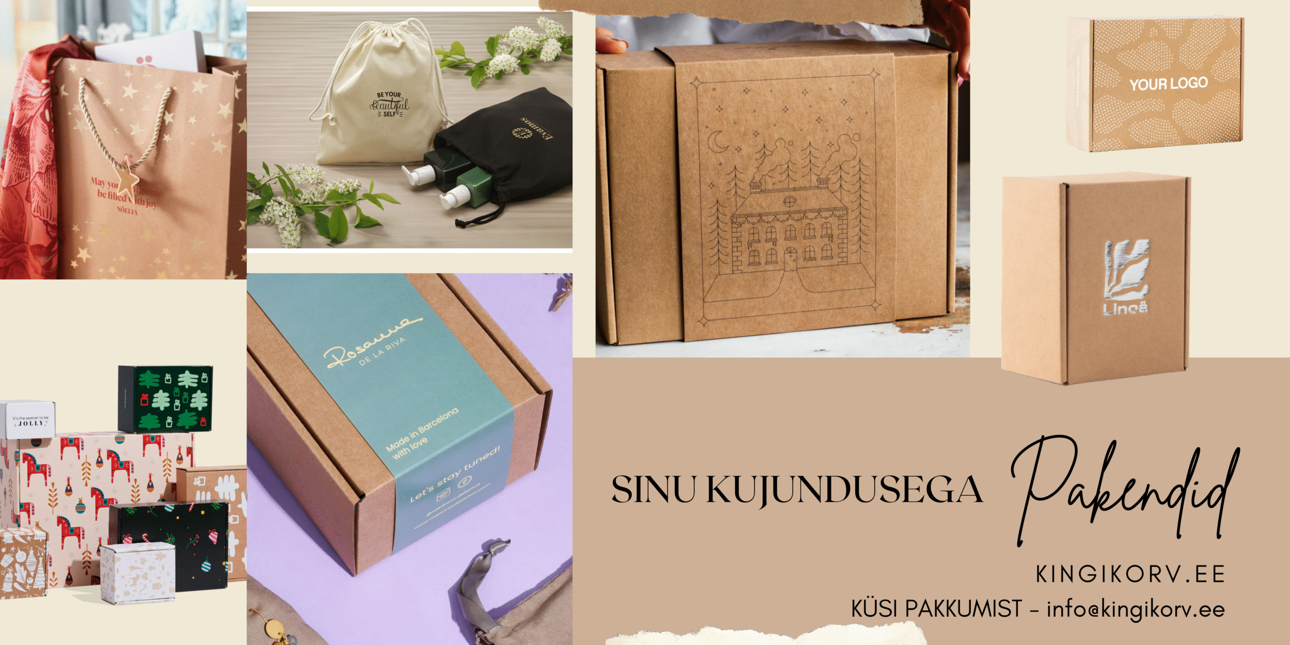 Pakume erinevas hinnaklassis kinkepakendeid, millele saab lisada sinu ettevõtte logo või kujunduse. Täpse pakkumise saamiseks saada meile oma kujunduse soov ja sobiva pakendi valik. Allpool leiad levinumate pakendite näidishinnad ühevärvilise trüki puhul, kuid küsi julgelt lisa!