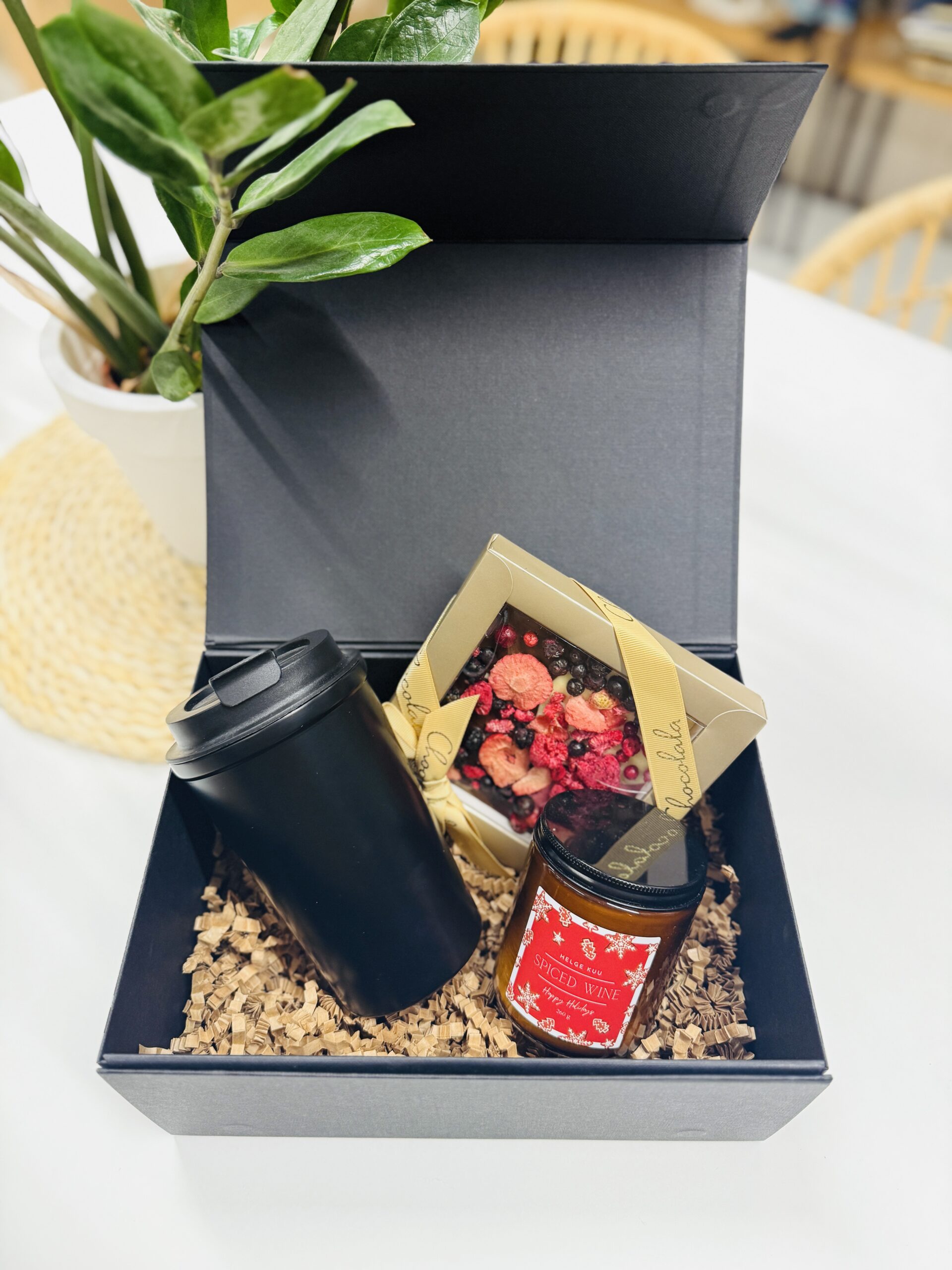 Kinkekomplektis on 350ml mahukas lekkekindel roostevabast terasest termokruus ja Eestis toodetud käsitööšokolaad marjadega. Brace and Chocolate kinkekomplekt sobib kinkimiseks koostööpartnerile, töötajale või kliendile.